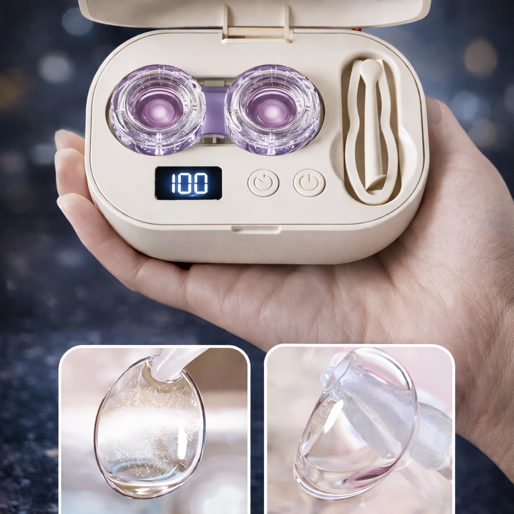 Ultrasonic cleaning is actually gentler on both your lenses and your eyes than manual rubbing. The process uses only water or saline solution (no harsh chemicals required unless you choose to add your regular solution). The cleaning action removes irritants that cause sensitivity. Most users with sensitive eyes report significant comfort improvement.