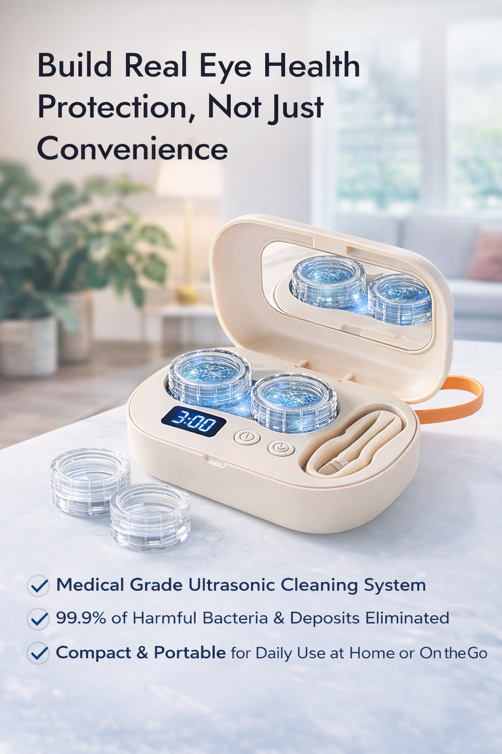 Budget contact lens cases and manual cleaning methods only provide temporary solutions because they don't address why your eyes get irritated in the first place: poor sanitation, inconsistent cleaning, and bacterial growth. The Alpha Vision Care Pro delivers medical grade cleaning with ultrasonic technology that eliminates 99.9% of harmful bacteria and protein deposits. The rechargeable battery means you're not just buying a cleaner. You're building a complete lens care system that protects your vision. The compact design with built in mirror means proper eye care isn't something that stays at home; it's a habit you maintain everywhere you go.